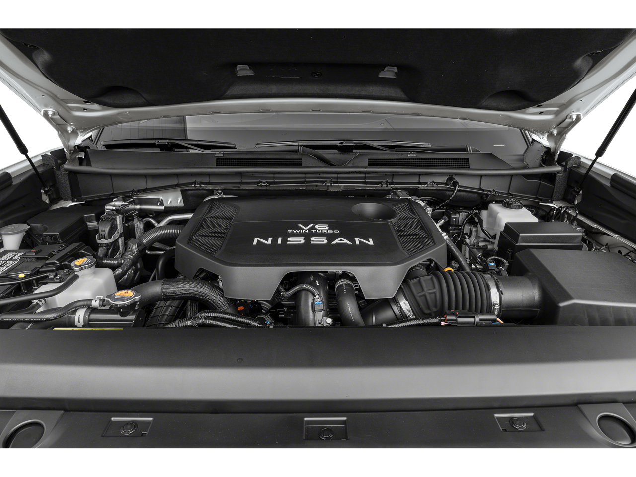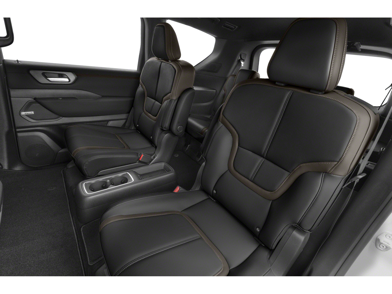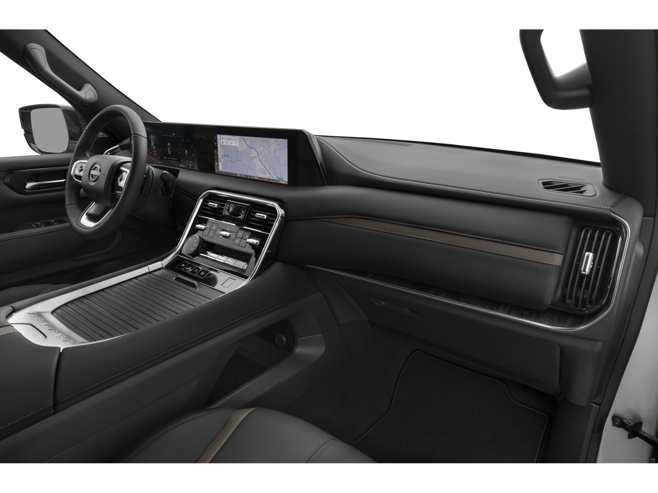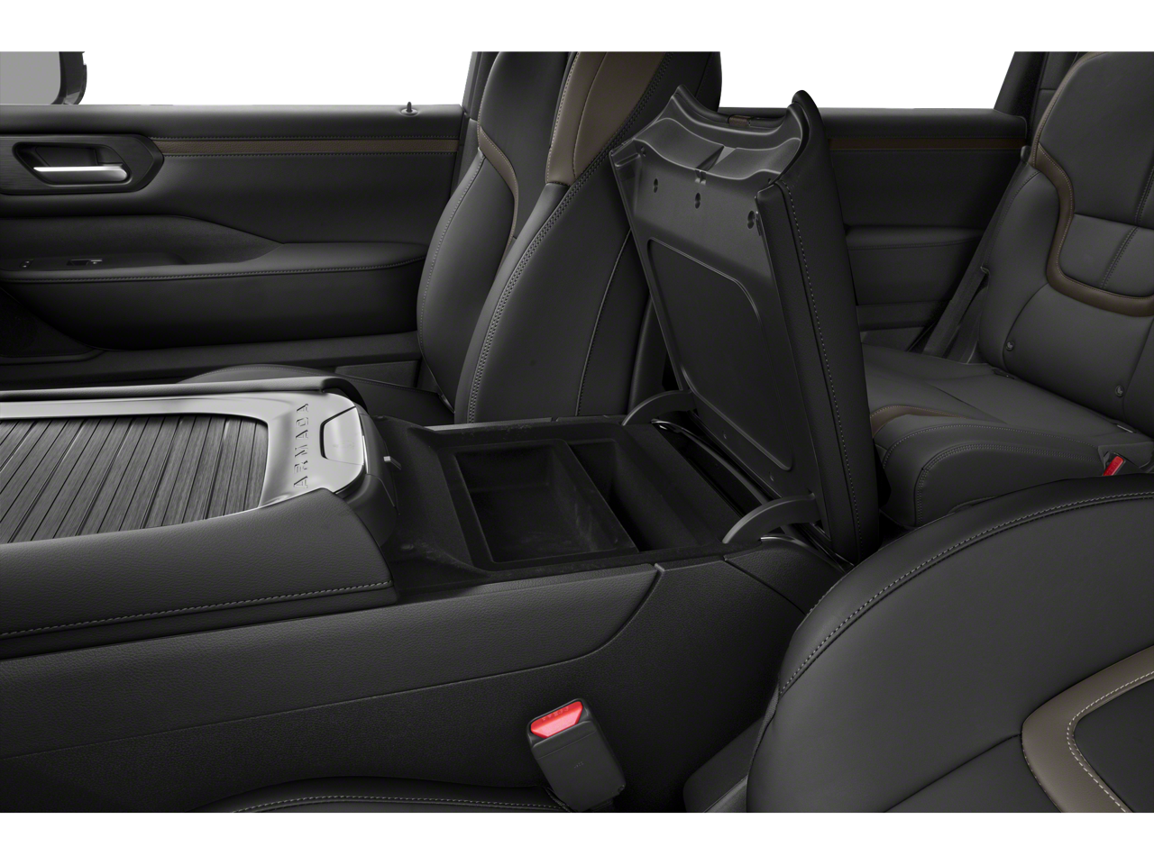 CAPTAINS CHAIR SEAT PACKAGE Replaces 2nd-row split-bench seat, Passenger capacity decreases from 8 to 7, 2nd Row Outboard Captains Chairs w/Armrests, 2nd Row Center Console w/2 Cupholders, EZ Flex 2nd-Row Seating System w/1-Touch Release, CROSS BARS. Nissan SL with Super Black exterior and Charcoal interior features a V6 Cylinder Engine with 425 HP at 5600 RPM*.