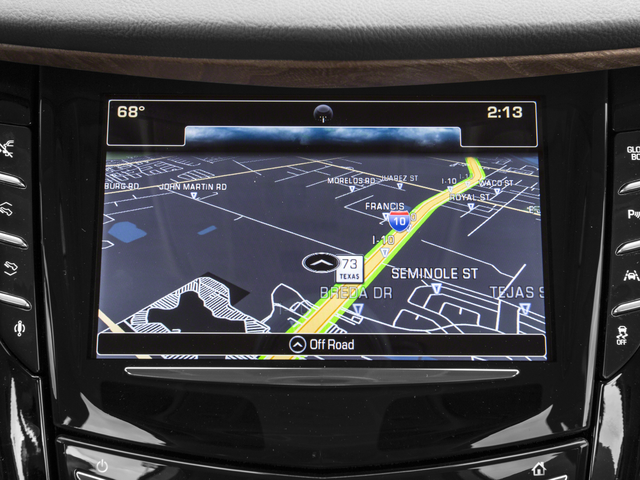 - Cadillac CUE Information and Media Control System with Embedded Navigation 8" diagonal color information display featuring touch response, haptic feedback, gesture recognition, Natural Voice Recognition and Phone Integration for Apple CarPlay capability for compatible phone. Five USB ports, including one in the articulating storage door/bin and auxiliary audio port