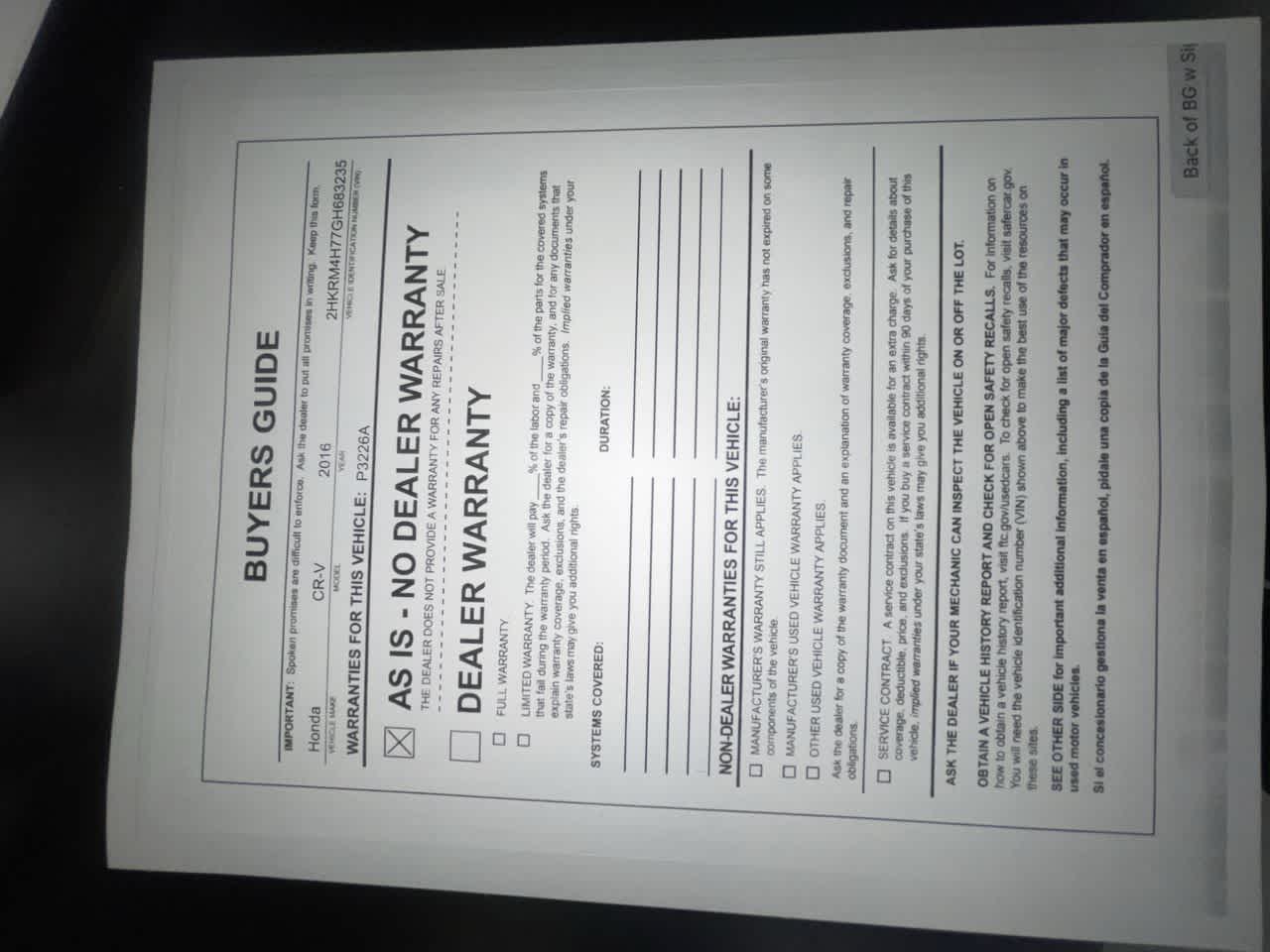 - Vehicle Name: Honda CR-V