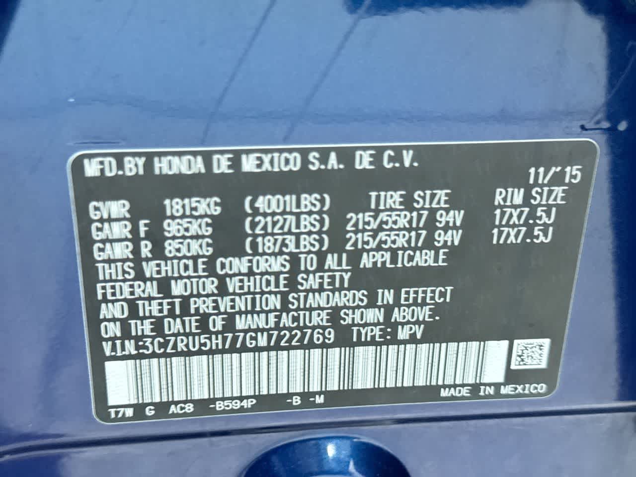 - Vehicle Name: Honda HR-V