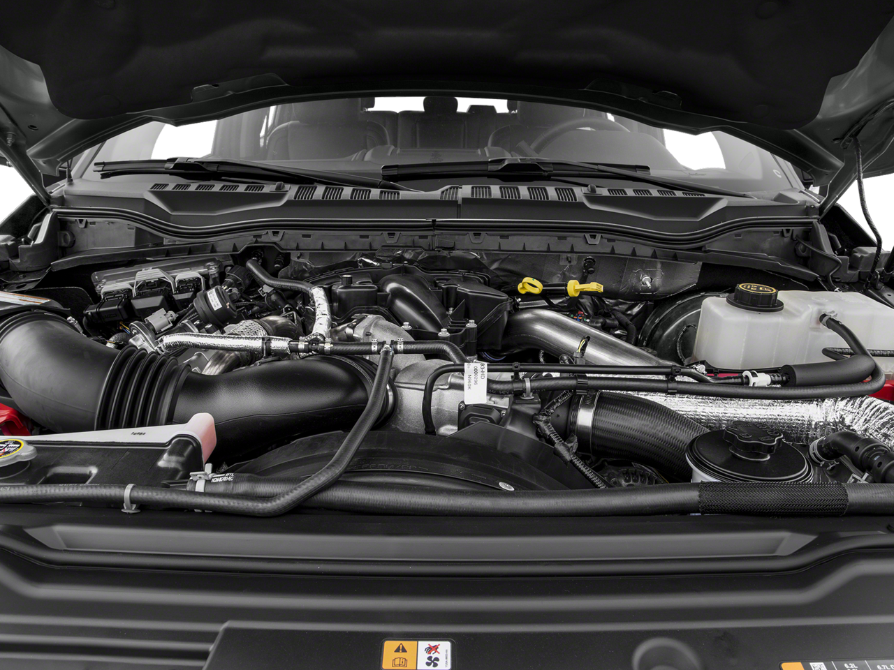 ENGINE: 6.7L 4V OHV POWER STROKE V8 TURBO DIESEL B20 4 valve OHV, manual push-button engine-exhaust braking and intelligent oil-life monitor, Extra Heavy-Duty 220 Amp Alternator, 34 Gallon Fuel Tank, 3.31 Axle Ratio, Dual 78-AH 750 CCA Batteries, TOW TECHNOLOGY BUNDLE Automatic High Beam, rain-sensing windshield wipers, Ultimate Trailer Tow Camera System, 360 degree camera system and trailer reverse guidance, NOTE: Does not include customer placed trailer camera, Rear CHMSL Camera, Display in center stack screen, LED Center High-Mounted Stop Lamp (CHMSL) w/cargo light and rear video camera, Adaptive Steering, Lane-Keeping Alert, TWIN PANEL POWER MOONROOF map lights and moonroof switches, CHROME PACKAGE Wheels: 18 Chrome PVD Aluminum, Body-Color Door Handles w/Chrome Insert, Unique Chrome Mirror Caps, 6 Angular Chrome Step Bars, Chrome Exhaust Tip, VOICE-ACTIVATED NAVIGATION HD and SiriusXM Traffic and Travel Link, NOTE: SiriusXM Traffic and Travel Link includes a, Services are not available in Alaska and Hawaii, TOUGH BED SPRAY-IN BEDLINER tailgate-guard, black box bed tie-down hooks and black bed attachment bolts, ELECTRONIC-LOCKING W/3.55 AXLE RATIO, REMOTE START SYSTEM, TRANSMISSION: TORQSHIFT 6-SPEED AUTOMATIC (6R140), SelectShift. Ford Lariat with Magnetic exterior and Black interior features a 8 Cylinder Engine with 440 HP at 2800 RPM*.