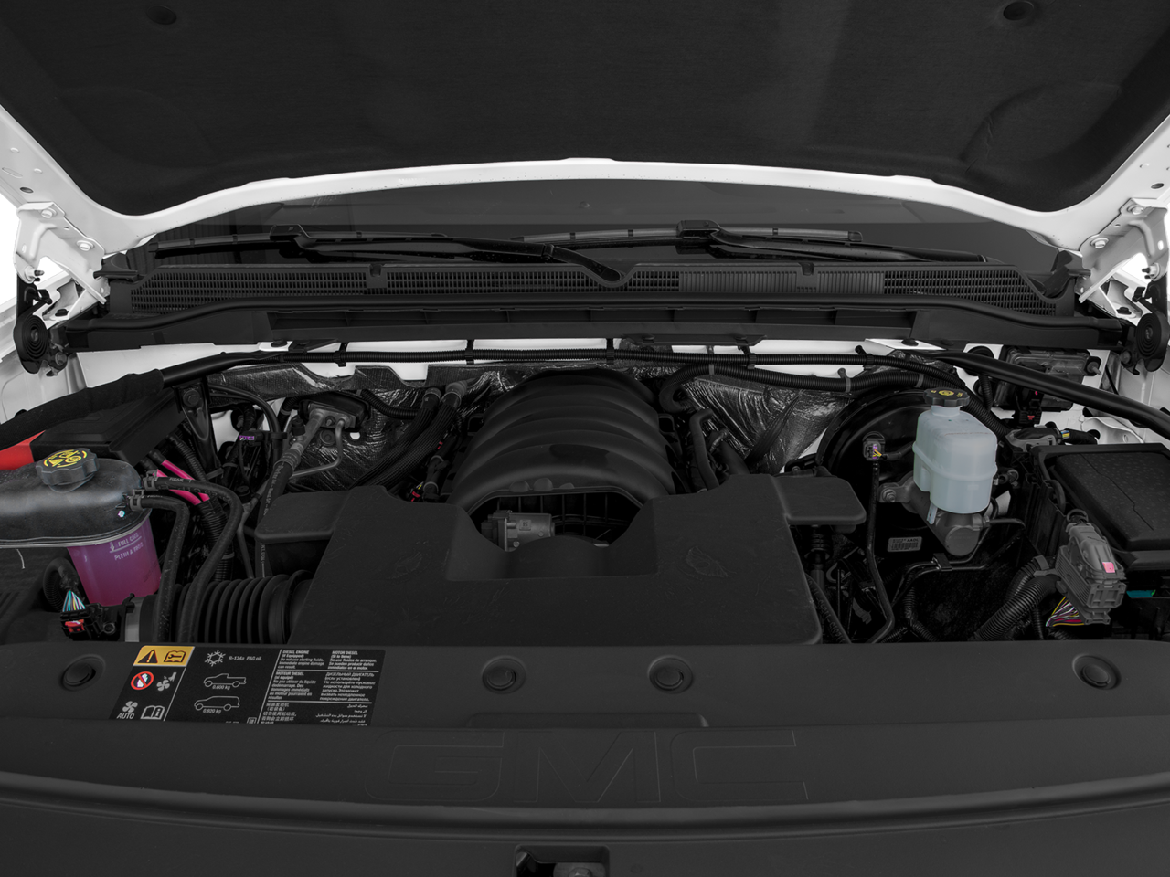 22 (55.9 CM) 6-SPOKE HIGH-GLOSS BLACK WHEELS LPO wheels will come with 4 steel 22 wheels from the factory with alignment specs set to 22 LPO wheel selected, BLACK TUBULAR ASSIST STEP, 6 RECTANGULAR, FRONT FULL-FEATURE LEATHER-APPOINTED BUCKET with (KA1) heated seat cushions and seat backs. Includes 10-way power driver and front passenger seat adjusters, including 2-way power lumbar control, 2-position driver memory, adjustable head restraints, (D07) floor console and storage pockets. (Includes (K4C) wireless charging. BOSE SOUND WITH 6 SPEAKER SYSTEM (7 speaker system including subwoofer when ordered with bucket seats) includes (NKC) noise control system.), BED LINER, SPRAY-ON Pickup box bed liner consisting of high pressure, chemically bonded, sprayed-on polyurea & polyurethane liner formulation. Liner is permanently bonded to the truck bed providing a water tight seal. Includes embossed Denali logo on front bed wall. The textured, non-skid surface is black in color and robotically applied. Spray-on liner covers entire bed interior surface below side rails, including tailgate, front box top rail, gage hole plugs and lower tie down loops. AUDIO SYSTEM, 8 DIAGONAL COLOR TOUCH SCREEN NAVIGATION WITH GMC INFOTAINMENT SYSTEM, AM/FM/SIRIUSXM, HD RADIO with USB ports, auxiliary jack, Bluetooth® streaming audio for music and most phones, Pandora Internet radio and voice-activated technology for radio and phone, ENGINE, 5.3L ECOTEC3 V8, WITH ACTIVE FUEL MANAGEMENT, DIRECT INJECTION and Variable Valve Timing, includes aluminum block construction (355 hp [265 kW] @ 5600 rpm, 383 lb-ft of torque [518 Nm] @ 4100 rpm; more than 300 lb-ft of torque from 2000 to 5600 rpm) (STD), TRANSMISSION, 6-SPEED AUTOMATIC, ELECTRONICALLY CONTROLLED with overdrive and tow/haul mode. Includes Cruise Grade Braking and Powertrain Grade Braking (STD). Privacy Glass, Keyless Entry, Steering Wheel Controls, Alarm, Heated Mirrors.
