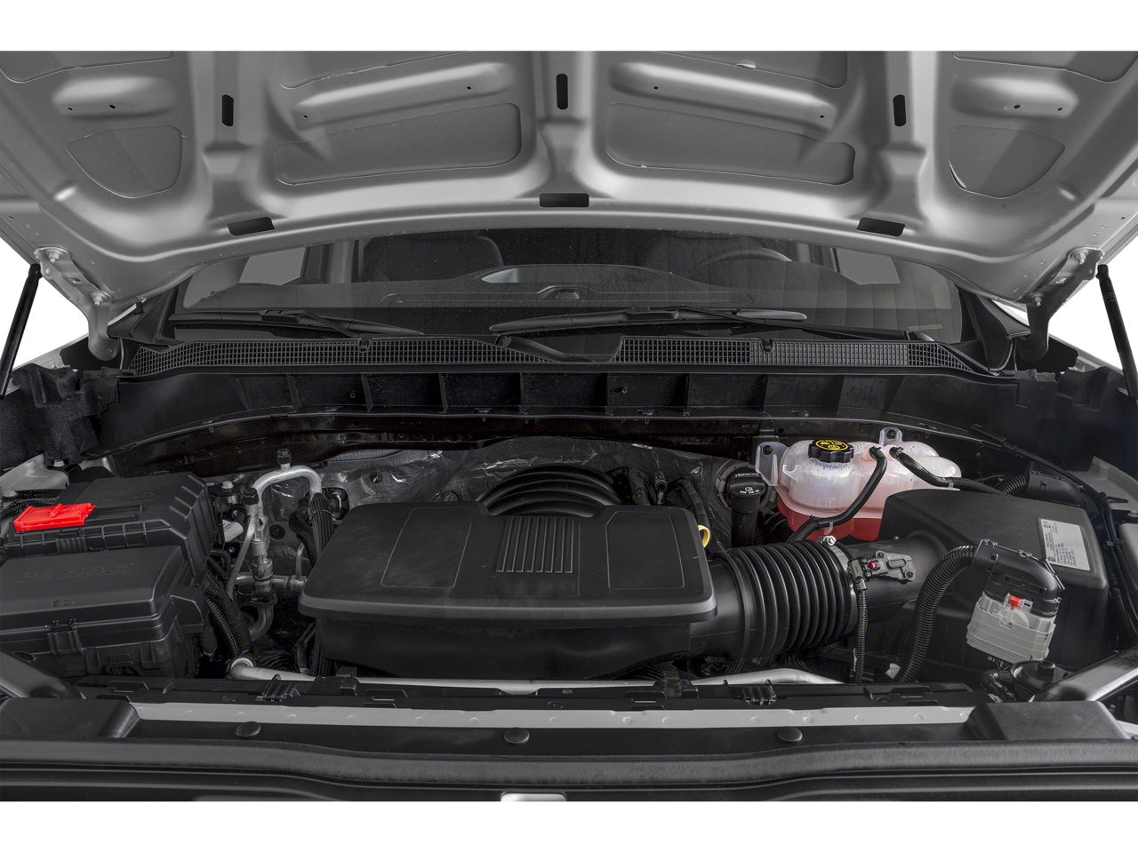 CHEVROLET INFOTAINMENT 3 SYSTEM 7 diagonal color touchscreen, AM/FM stereo. Additional features for compatible phones include: Bluetooth® audio streaming for 2 active devices, voice command pass-through to phone, wired Apple CarPlay® and Android Auto® capable. (STD), ENGINE, 2.7L TURBO (310 hp [231 kW] @ 5600 rpm, 348 lb-ft of torque [471 Nm] @ 1500 rpm) Includes (MQE) 8-speed automatic transmission and (KW5) 220-amp alternator.) (STD), ELECTRONICALLY CONTROLLED with overdrive and tow/haul mode. Includes Cruise Grade Braking and Powertrain Grade Braking (STD). Chevrolet Custom with RED HOT exterior and JET BLACK interior features a 4 Cylinder Engine with 310 HP at 5600 RPM*.