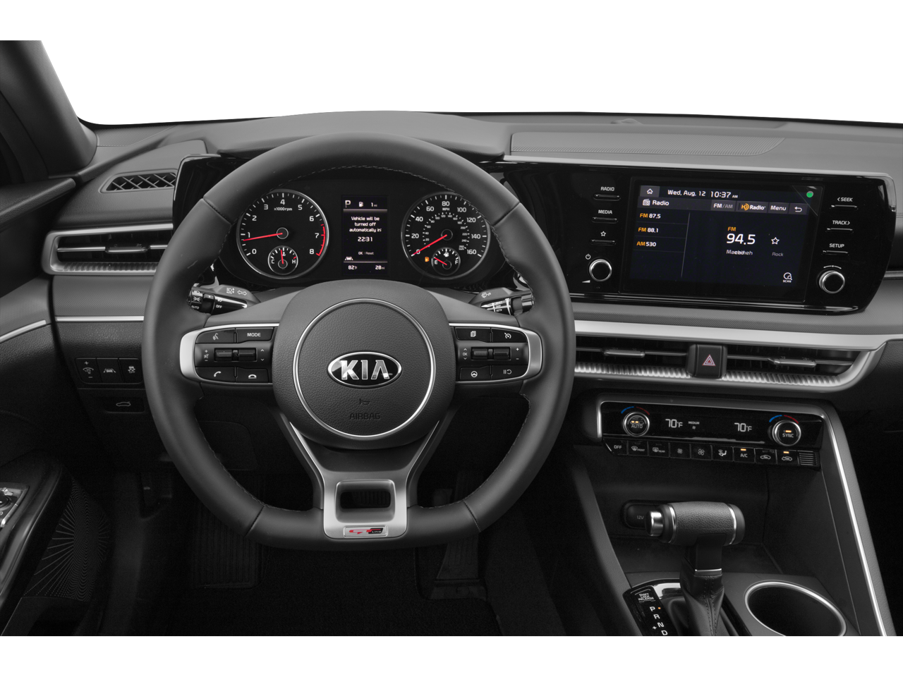 Blind Spot Monitor, Cross-Traffic Alert, Child Safety Locks, Electronic Stability Control, Brake Assist, 4-Wheel ABS, 4-Wheel Disc Brakes, Tire Pressure Monitoring System Kia GT-Line with Wolf Gray exterior and Black interior features a 4 Cylinder Engine with 180 HP at 5500 RPM*.