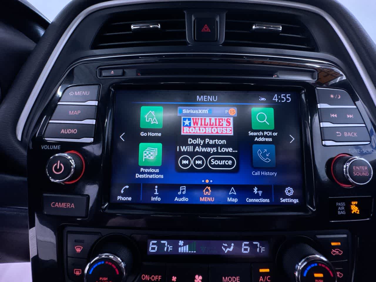 - Radio: AM/FM/CD Bose Audio System -inc: MP3/WMA/AUX reader, 11 speakers, Bose Centerpoint 2.0, NissanConnect featuring 8" color display w/multi-touch control, Apple CarPlay, Android Auto, 2 front illuminated USB connection ports (1 Type-A, 1 Type-C), Bluetooth® hands-free phone system, hands-free text messaging assistant, streaming audio via Bluetooth®, voice recognition, Siri Eyes Free, SiriusXM radio, SiriusXM advance audio features, NissanConnect Services powered by SiriusXM, Wi-Fi hotspot, Nissan door to door navigation, SiriusXM Traffic, SiriusXM Travel Link, display commander and 7" Advance Display Assist Display (ADAD)
