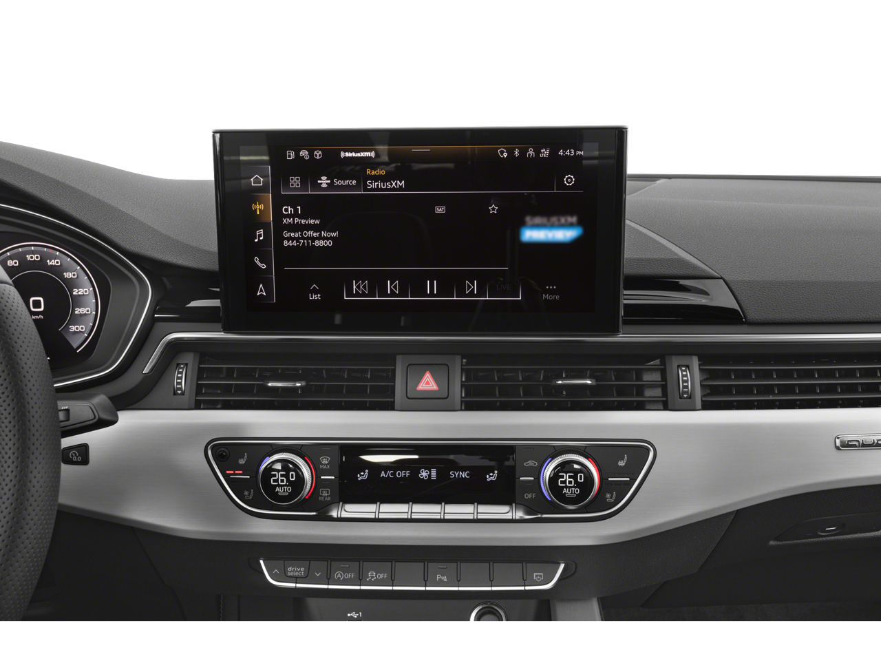 - Radio: Audi Sound System -inc: MMI touch display w/10.1" center screen, Bluetooth® preparation for mobile phone w/streaming audio, Audi connect CARE (limited time subscription) and Audi smartphone interface w/wireless Apple CarPlay
