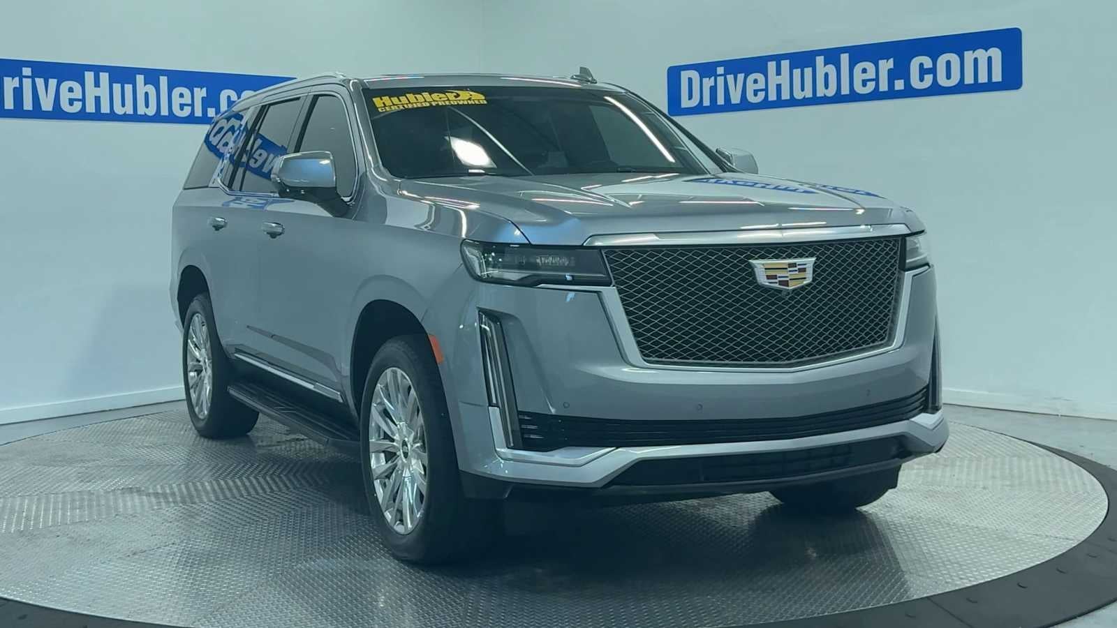 REAR SEAT ENTERTAINMENT SYSTEM includes dual independent rear seat-mounted 12.6 diagonal color-touch LCD HD screens, 2 HDMI input ports on the back of the center console, two 2-channel Bluetooth® headphones; compatible with other Bluetooth® headphones, OLED INFOTAINMENT EXPERIENCE WITH NAVIGATION AM/FM/SiriusXM with 360L with 16.9 diagonal color information display (displays and controls navigation, music and all features and functions of the vehicle), personalized profiles for each drivers settings, Natural Voice Recognition, Phone Integration for Wireless Apple CarPlay®/Wireless Android Auto® capability for compatible phone, Connected Apps and Teen Driver (STD), ENGINE, 6.2L V8 WITH DYNAMIC FUEL MANAGEMENT Direct Injection and Variable Valve Timing, includes aluminum block construction (420 hp [313.2 kW] @ 5600 rpm, 460 lb-ft of torque [623.7 Nm] @ 4100 rpm) (STD), TRANSMISSION, 10-SPEED AUTOMATIC electronically controlled with overdrive, tow/haul mode and tap up/tap down shifting (STD). Cadillac 4WD Premium Luxury with Argent Silver Metallic exterior and Jet Black interior features a 8 Cylinder Engine with 420 HP at 5600 RPM*.