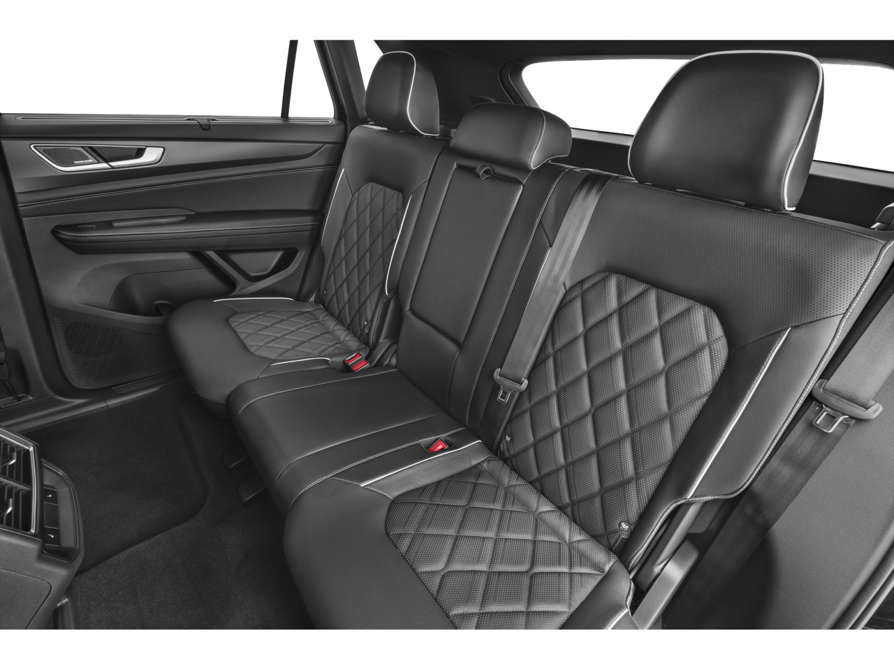 Navigation, Leather Seats, Panoramic Roof, All Wheel Drive, Power Liftgate, Heated Driver Seat, Heated Rear Seat, Cooled Driver Seat, Back-Up Camera, Turbocharged, Premium Sound System, Satellite Radio, iPod/MP3 Input, Trailer Hitch, Remote Engine Start Rear Spoiler, MP3 Player, Rear Seat Audio Controls, Sunroof, Onboard Communications System. Volkswagen 2.0T SEL Premium R-Line with Deep Black Pearl exterior and Titan Black w/ Blue Underlay interior features a 4 Cylinder Engine with 269 HP at 5500 Rpm*.