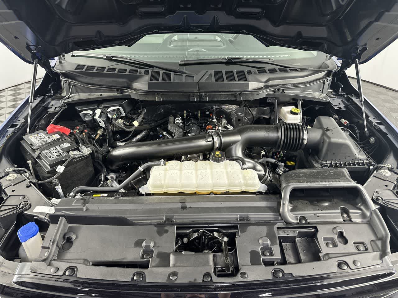 ENGINE: 3.5L V6 ECOBOOST auto start-stop technology, 3.31 Axle Ratio, GVWR: 7,100 lbs Payload Package, EQUIPMENT GROUP 301A STANDARD Chrome Door & Tailgate Handles, Wrapped Steering Wheel, Black Painted Grille w/Chrome Center Bar, coast to coast black mesh, Dual-Zone Electronic Automatic Temperature Control, (DEATC), 6 Angular Bright Anodized Step Bar, Chrome Single-Tip Exhaust, TRANSMISSION: ELECTRONIC 10-SPEED AUTOMATIC SelectShift w/progressive range select and selectable drive modes: normal, ECO, sport, tow/haul, slippery, deep snow/sand and mud/rut (STD). Ford XLT with Atlas Blue exterior and Medium Dark Slate interior features a V6 Cylinder Engine with 325 HP at 5000 RPM*.